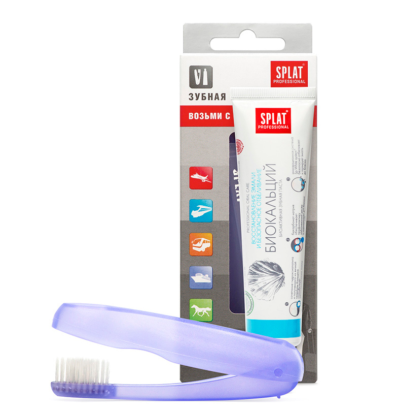 Стоит отметить, что зубные пасты, представленные в таком наборе, являются давно проверенными «классическими» пастами компании Splat. Однако, на этот раз они имеют удобный «миниформат» — 40 мл, которого вполне хватит, собираясь в дорогу. И все же, если пасту можно купить отдельно, то такую удобную щетку найти практически невозможно, поэтому дорожный набор Splat незаменим в дороге, так как чистка зубов- это ежедневный ритуал, который должен проходить с удовольствием где бы Вы не находились.